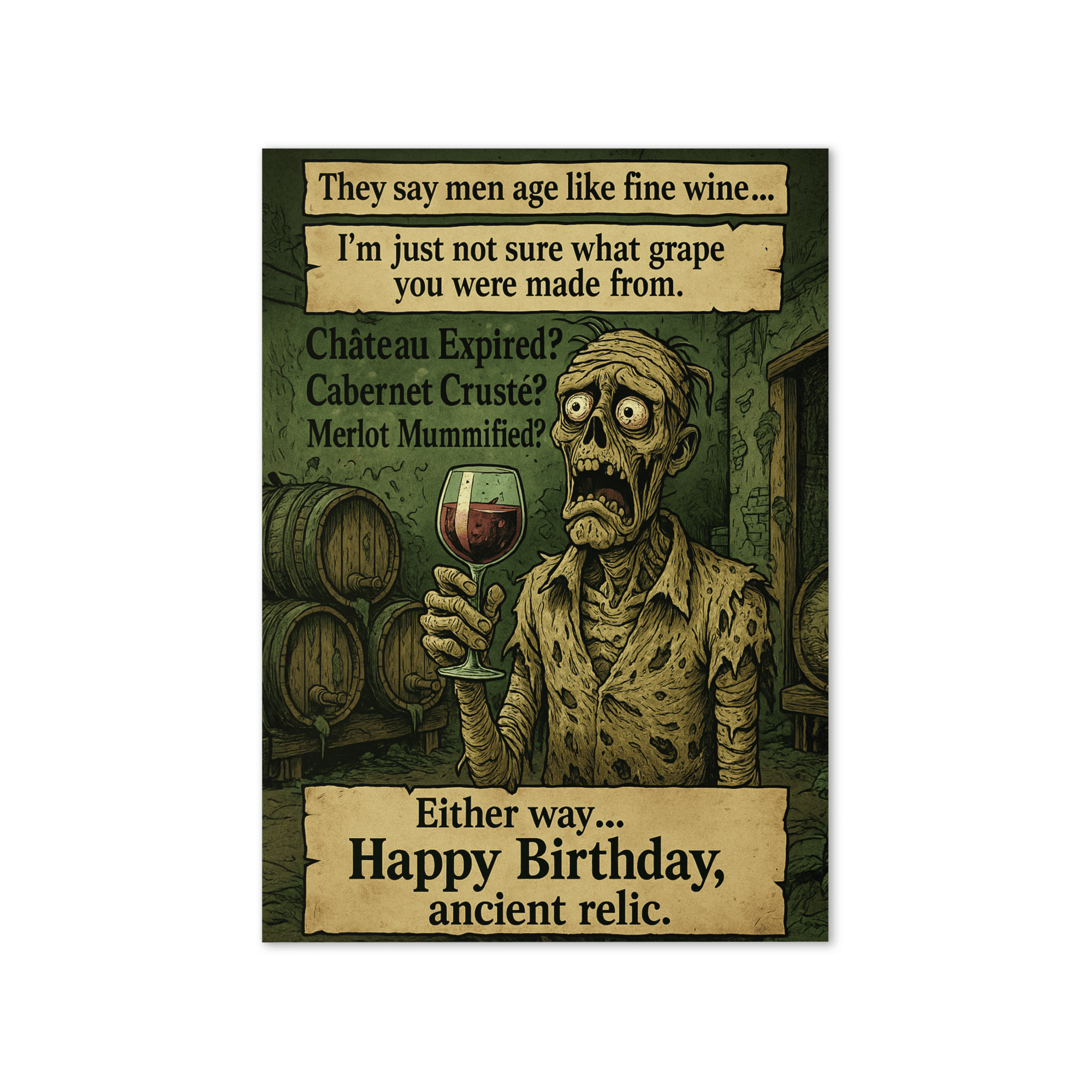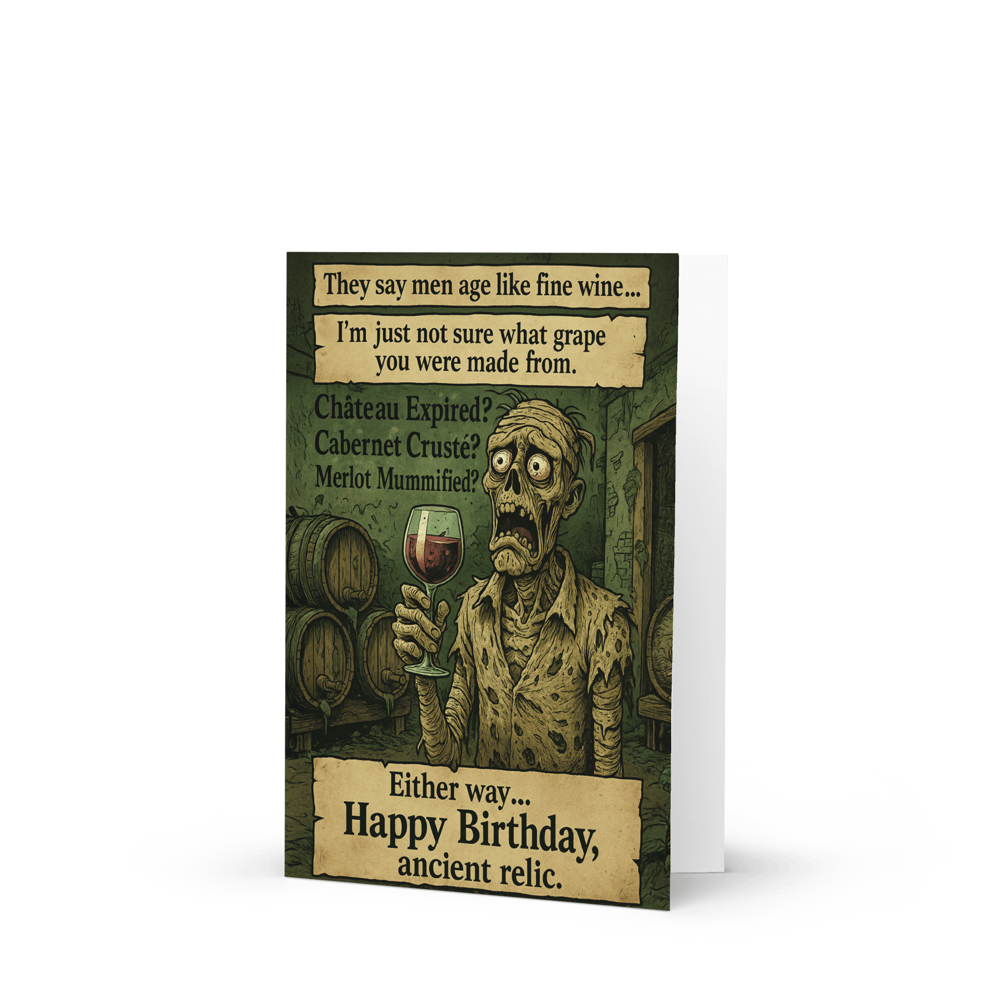 This brutally honest birthday card is for that one friend who's been "aging gracefully" since 1993 – and now qualifies for archaeological study.