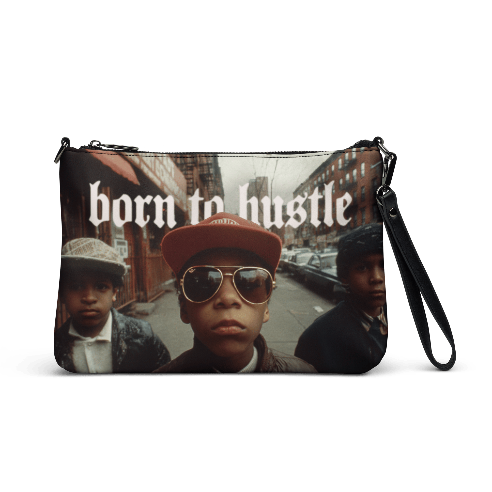 "BORN TO HUSTLE" CROSSBODY iPAD PREMIUM LEATHER BAG