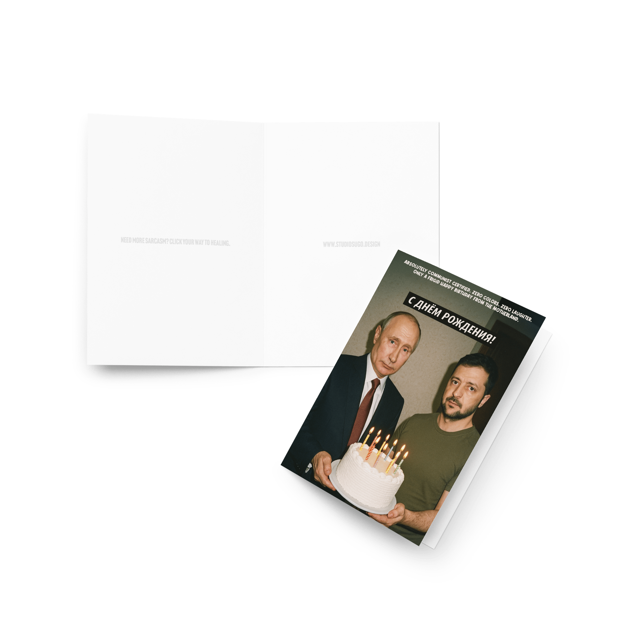 This parody birthday card is as cold and joyless as a Soviet winter — and that’s exactly the point. Perfect for friends who appreciate brutal sarcasm, bleak humor, and the kind of birthday wishes that feel more like a government-issued directive than a celebration.