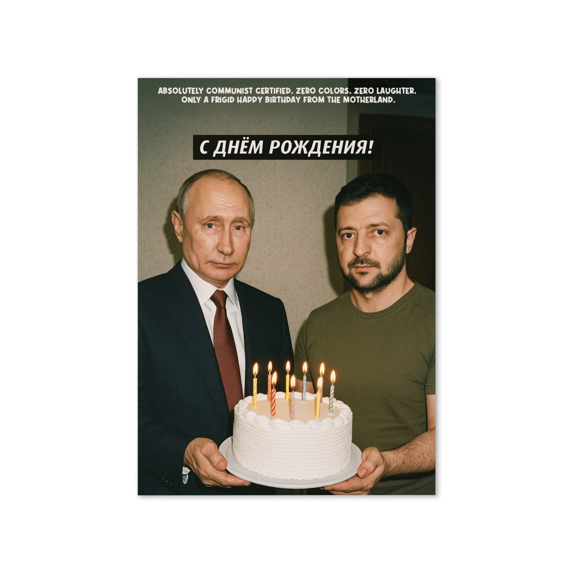 Absolutely Communist certified. Zero colors. Zero laughter. Only a frigid Happy Birthday from the Motherland.