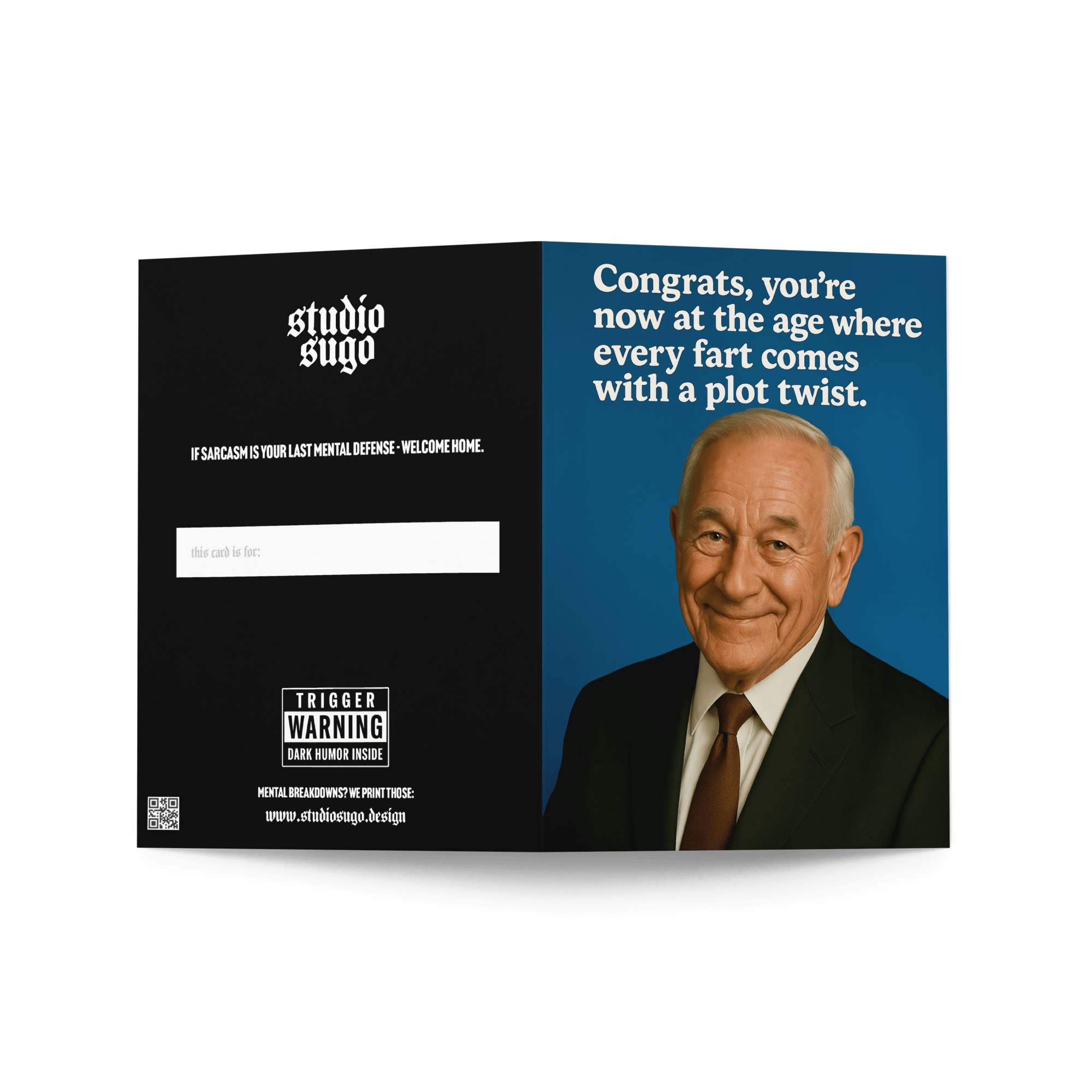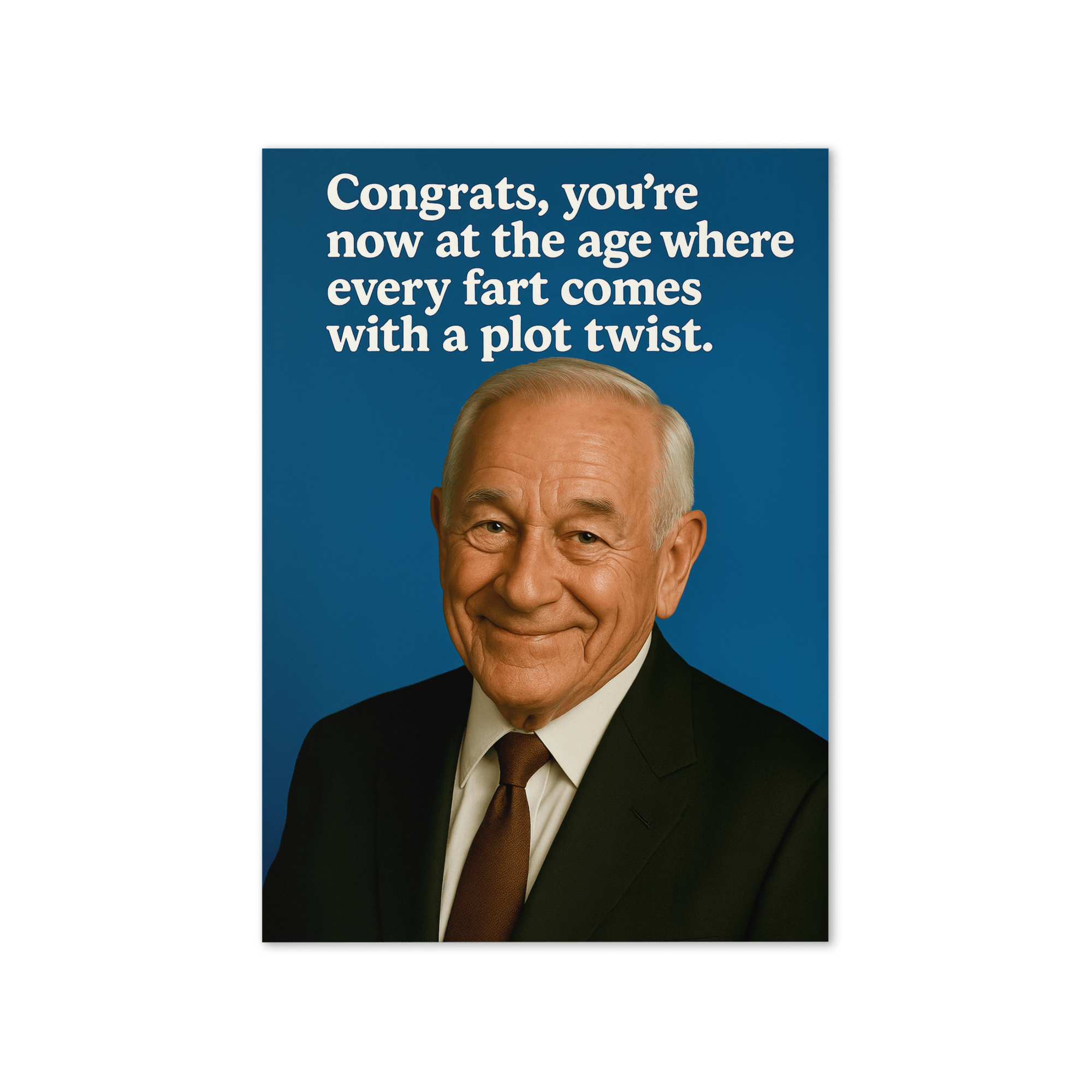 This birthday card is unapologetically crude, sarcastic, and laugh-out-loud relatable. Perfect for that one friend (or uncle) who’s reached the age where even the smallest bodily function carries suspense. Equal parts offensive and hilarious, it’s the ultimate reminder that aging isn’t graceful — it’s chaotic comedy.